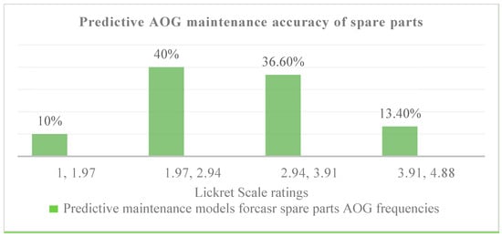 The authors’ findings align with the work of Banerjee et al. [11] and Berkcan and Aksoy [12], who similarly concluded that predictive maintenance reduces AOG incidents by 20–30%. As in their studies, our work confirmed the application of Logistic Regression in identifying high-risk intervals of component failure, justifying the application of statistical models to operations. While earlier research such as those conducted by EXSYN and Skywise [9] initiative were focusing primarily on system-level diagnostics or technical alarms, this research expands the application of forecasting models by directly linking them with spare parts logistics and AOG cost optimization. This expanded operational horizon distinguishes our approach and offers more integrated value to airline operations.