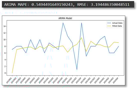 The deviation from previous literature was noted in the performance of ARIMA models during unusual working periods. Unlike previous studies, our model achieved lower accuracy levels between 2021 and 2022 due to the unexpected impact of COVID-19 on flight operations and maintenance scheduling. This highlights the need for the application of hybrid models that are sensitive to outlier environments.