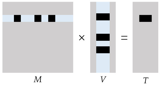 Graphs are ubiquitous in scientific computing. For example, a discretized lattice of partial differential equations can be conceptualized as a graph. Similarly, the sparse structure of a sparse matrix can be represented graphically. Graph partitioning and reordering are important problems in various fields, including scientific computing, VLSI design, geographic information systems, operations research, and mission planning [53]. During the iterative solution of systems of linear equations in finite element methods, a key step in each iteration involves the product of sparse matrices and dense vectors. However, the sparse structure of the stiffness matrix and the intrinsic algorithmic properties of sparse matrix vector multiplication (SpMV) result in significant data storage requirements and low cache hit rates. This situation provides an opportunity to increase computational speed by enhancing the continuity of memory access. The SpMV process for sparse matrices is shown in Figure 2, where the black squares represent non-zero elements in the vector and a row of the matrix, and the light-colored areas represent a row of the matrix and a column of the vector. For each calculation, a single row of matrix M is multiplied by the elements in vector V. The relevant data are read according to the position of the non-zero elements in the rows of matrix M. The vector T is then obtained by multiplication and accumulation. The challenge of graph partitioning arises when solving the sparse system Ax = b in parallel. Graph partitioning is a crucial preconditioning stage in high-performance parallel computing. Efficient graph partitioning and the reordering of the graph associated with matrix A can distribute the computational workload evenly across computing nodes and significantly reduce communication overhead during parallel SpMV operations [54].