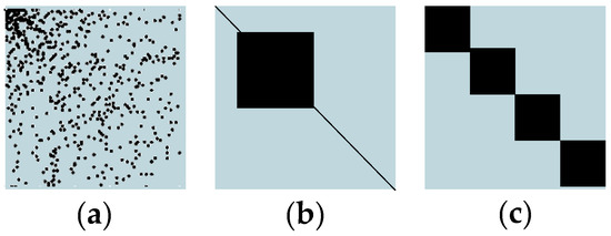 Schematic diagram for dividing and rearranging matrices. (a) Original matrix; (b) full graph rearrangement; (c) graph division and rearrangement.