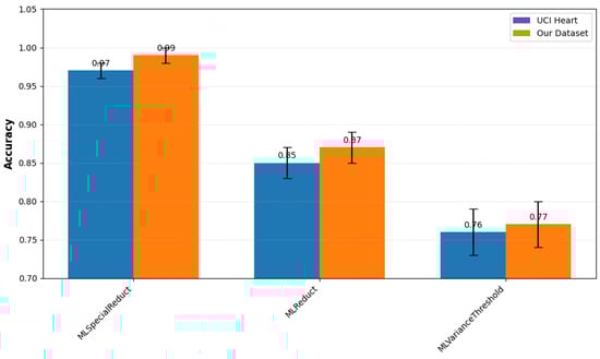 - MLVarianceThreshold: Yielded accuracies of 0.72–0.77 across classifiers, underscoring the limitations of traditional variance-based selection compared to RST approaches.