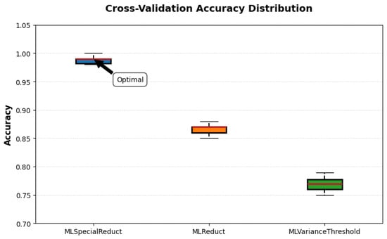As datasets grow in complexity and machine learning spans diverse domains, advanced feature selection becomes essential []. Traditional methods like VarianceThreshold struggle with uncertain, imbalanced, or large-scale data, leading to overfitting and inefficiency []. This study addresses the integration of RST-based feature selection—MLReduct, MLSpecialReduct, and MLFuzzyRoughSet [,]—into ML workflows to enhance classifier performance, such as with XGBoost [], surpassing the limitations of our adapted MLVarianceThreshold [].