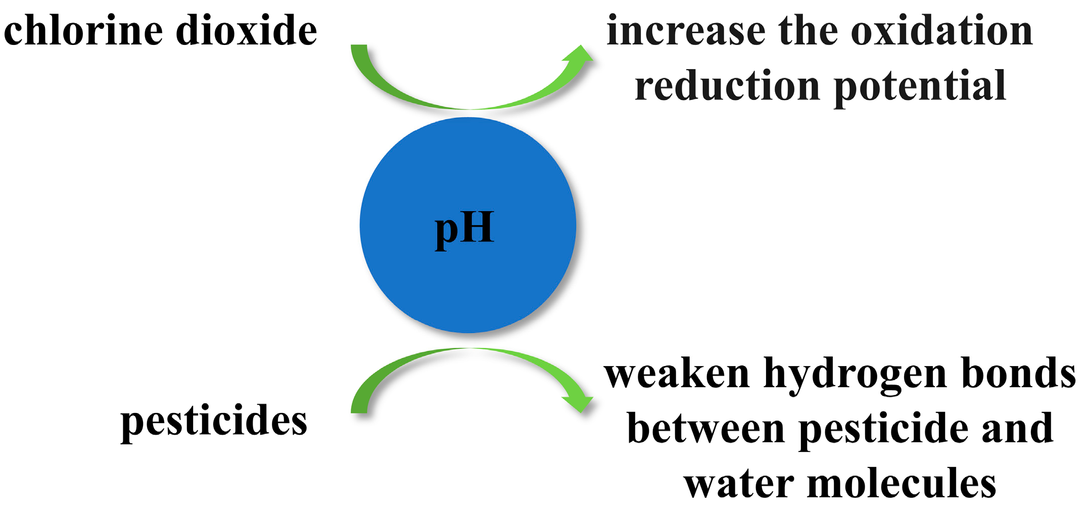 - Chlorine dioxide and ozone, as oxidants, currently have less research on the degradation of pesticides in gaseous form compared to aqueous solutions. Gaseous chlorine dioxide and ozone are commonly used in the food industry. In the future, we can focus on the degradation of pesticides by gaseous chlorine dioxide and ozone.