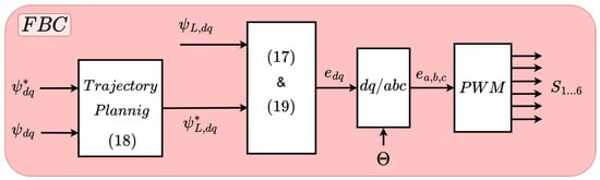 As previously discussed, one of the key properties of differentially flat systems is that all system dynamics can be fully characterized through the selected flat output. Consequently, by imposing a trajectory on this output, it is possible to ensure that all system variables are properly controlled both in steady-state and during transient conditions. In the proposed control system, the reference output is chosen as the inductor flux , which its components can be obtained as