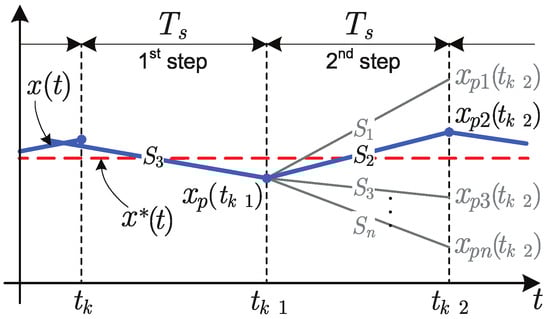 where n represents the number of possible control actions. In this case, the control variable is the virtual flux , obtained from the equation previously demonstrated in [57].