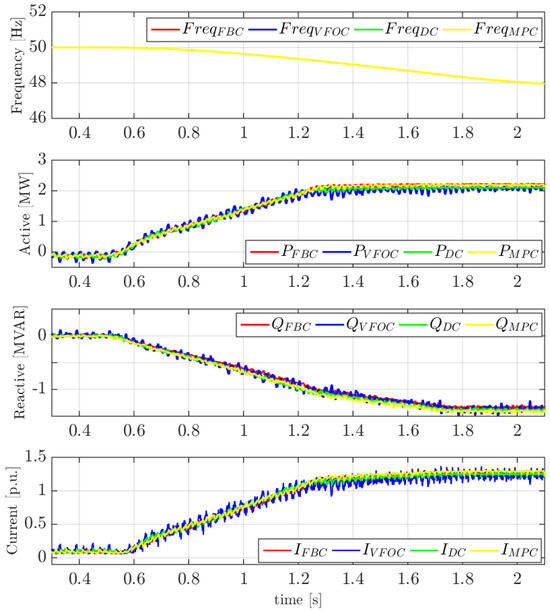 In this section, the four control schemes compared in this article are developed, starting with a summary of the model based on virtual flux-oriented control (VFOC), which is shown in Figure 2 and has already been validated by the same authors even in a commercial converter [58]. Next, the implementation of flatness-based control (FBC), direct control (DC), and model predictive control (MPC) are detailed as a function of the virtual flux variable. The three proposed models attempt to replace the block located on the right side in Figure 2 (VFOC) by other methods of voltage vector control.