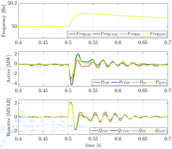 As shown in Figure 2, the original control scheme consists of three control loops. The first one, located in the upper left part of Figure 2, is referred to as the Reactive Power Control (RPC). This block enables the decision of whether to regulate the reactive power (PQ mode) or the converter voltage (PV mode), with the second case being used for the tests performed in this article. A proportional controller, with gain, determines the reference magnitude of the virtual flux to be imposed on the converter, .