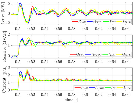 | Saturate regulators [51,52,53] | Saturates the reference currents of the internal current control | ✗ Can adversely affect the control angle, potentially compromising the converter’s stability | |