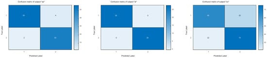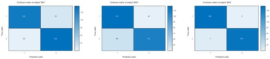 The confusion matrix of BCICIV IIb for subjects “B01”, ”B03”, and “B04”.