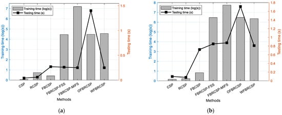 (a) The required time for training and test in BCICIII IVa; (b) the required time for training and test in BCICIV IIb.