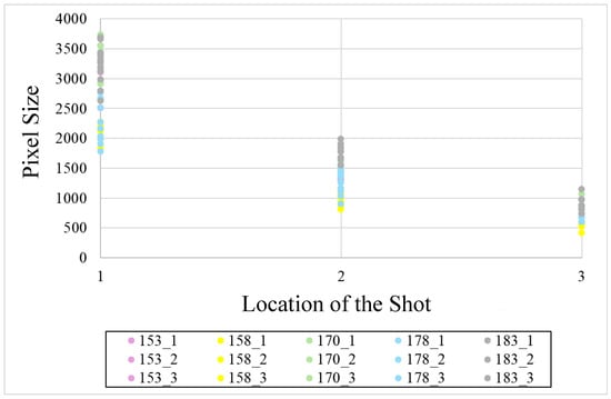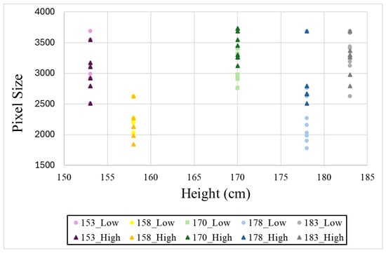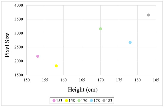 Figure 10. The relationship between height and facial size at different photographing heights.