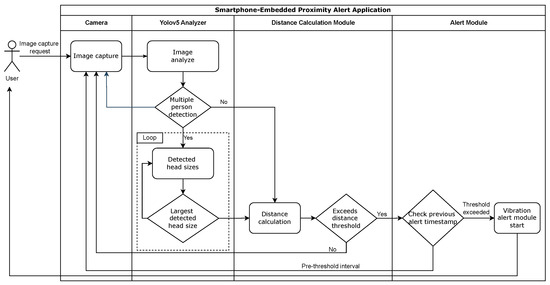 Figure 12. Sequence diagram of a visual proximity detection and alert system.