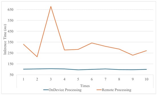 Figure 15. Comparison of total processing time between on-device and edge server-based approaches.