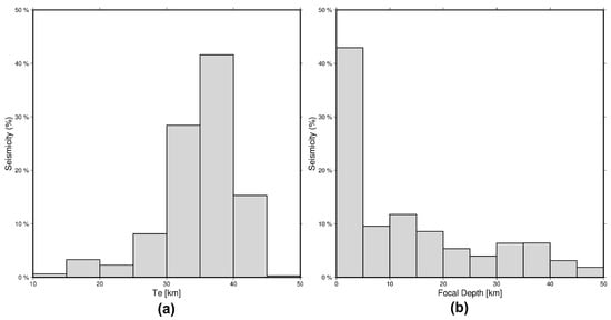 - Burov, E.B.; Diament, M. The effective elastic thickness (Te) of continental lithosphere: What does it really mean? J. Geophys. Res. Solid Earth 1995, 100, 3905–3927. [Google Scholar] [CrossRef]