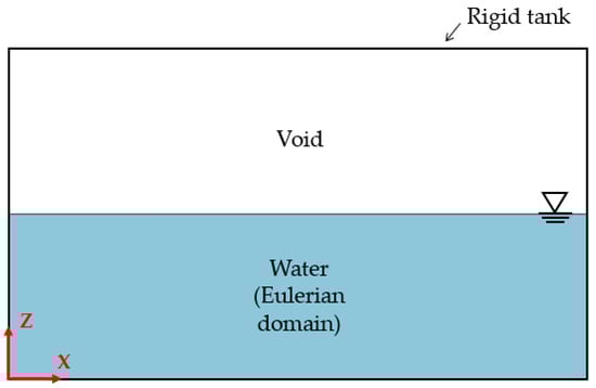 In simulations involving fluid–structure interactions, such as sloshing in a liquid tank, it is essential to account for significant fluid deformation and the interface between the fluid and the solid structure. Directly applying the traditional Lagrangian formulation to model the fluid domain can be impractical due to excessive distortion of fluid elements, particularly under high-deformation conditions. Instead, the Eulerian formulation is typically used for the fluid, as it maintains a fixed mesh while allowing fluid flow to be described within this mesh system.