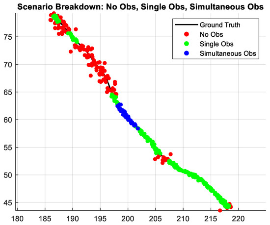 The results in Table 5 show that both the MJPF and the combined dictionary substantially enhance localization accuracy (the best result is highlighted in bold). Removing the MJPF leads to increased error due to the lack of stochastic reasoning across cluster transitions, while omitting the combined dictionary weakens the system’s ability to handle simultaneous track observations and sensor dropout scenarios. The highest error occurs when both components are disabled, confirming their combined necessity.