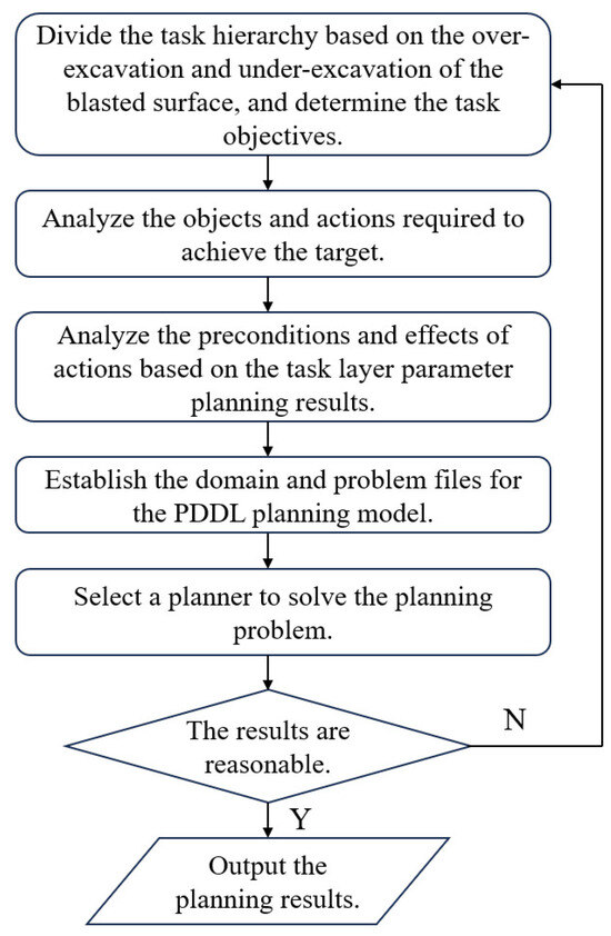 In recent years, with the rapid development of intelligent planning technology, new approaches have emerged for planning tunnel spraying tasks and autonomously generating action sequences [15]. Early modeling methods for intelligent planning include the STRIPS (Stanford Research Institute Problem Solver) method [16], the Hierarchical Task Network (HTN) planning method [17], and the Planning Domain Definition Language (PDDL) method [18]. Among these, the STRIPS method is only applicable to idealized task scenarios, while the HTN method requires separate handling of spatial constraints, temporal reasoning, and motion control dimensions. In contrast, the PDDL method has been widely adopted due to its comprehensive modeling capabilities. Previous studies have expanded the definitions of resources and activity instances based on the PDDL, covering the duration and effect attributes of activities, thereby improving the descriptive accuracy [19]. Other research has employed the PDDL for domain modeling and proposed a generic hierarchical task planning software architecture, further demonstrating its advantages in solving complex planning problems [20]. Through the PDDL task planning method, tunnel wet-spray tasks can be abstracted into formal descriptions, effectively decoupling domain knowledge from specific problem-solving and generating reasonable action sequences.
