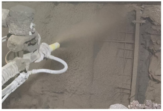 The spray distance H for the pit-filling layer is the distance from the nozzle of the spray gun to the tunnel surface. To ensure the density and quality of the sprayed concrete, engineering experience suggests selecting H ≈ 1.5 m.