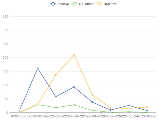 Secondly, the timeliness of public opinion guidance is crucial, requiring timely and targeted response strategies. Therefore, based on network public opinion analysis, improving the timeliness and specificity of public opinion guidance is necessary. To examine this, this study analyzed Weibo posts and comments related to EMR from 28 April 2022 to 10 September 2022 and calculated daily emotion values. In