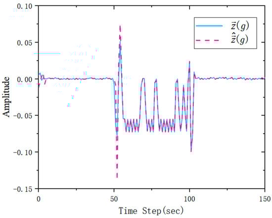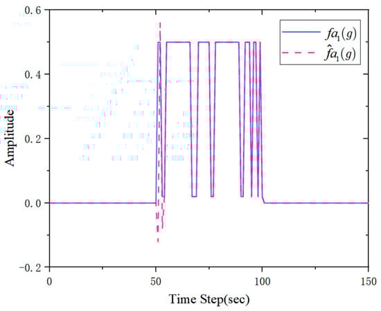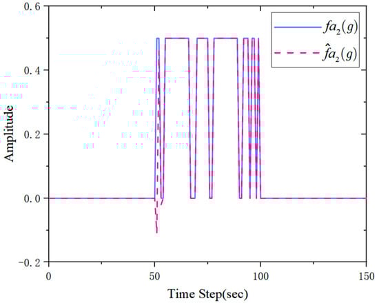 , respectively. The comparison between the actual fault signals (solid lines) and their estimates (dashed lines) demonstrates the accuracy of the proposed observer. It is noteworthy that transient negative values appear at the initial occurrence of faults. This phenomenon arose due to the observer’s adaptive response, where estimation oscillations were observed before stabilizing. Such behavior was