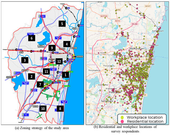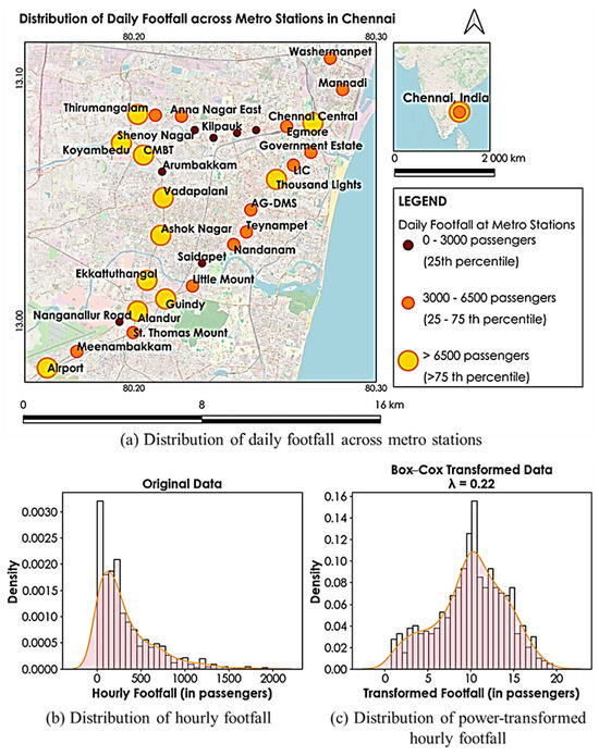 Three main data sources are utilized in this study. The first source is individual surveys, which are used to model train consideration. These surveys also collected information on respondents’ socio-demographic characteristics, perceptions of transit services, first- and last-mile connectivity, and walkability. The second source comprises automated fare collection (AFC) data from 32 metro stations in Chennai that capture weekday footfall. The third source is secondary data, including official timetables from Chennai Metro Rail Limited and the Metropolitan Transport Corporation to obtain metro and bus service frequency and headway details [