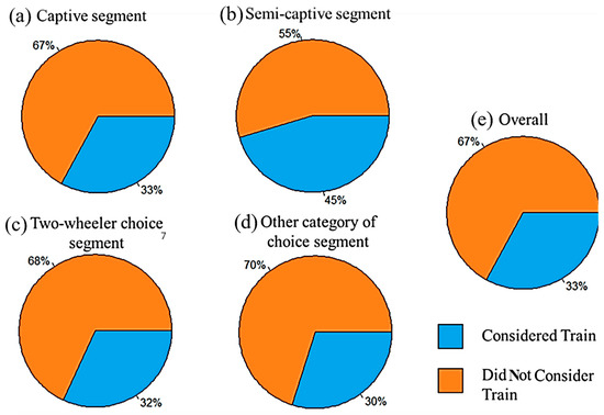 11]. Another study illustrated that individuals who are captive to public transit due to vehicle unavailability have a higher propensity to consider trains [