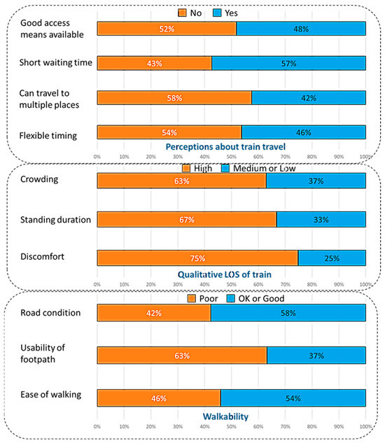 11]. However, the role of vehicle type, number, and degree of availability in train consideration has not received adequate attention. Notably, none of these studies explored whether the sensitivity to factors such as first- and last-mile connectivity, walkability, or perceptions towards train services varies across different market segments based on the availability of personal vehicles.