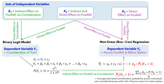 These objectives are investigated based on empirical data from Chennai City, India, using two main data sources: footfall data from the automated fare collection (AFC) system at metro stations and mode consideration data from a household survey. Footfall is defined here as the total number of passengers entering and exiting the train station (sum of hourly boarding and alighting) during a given time period. The two datasets are used to propose a joint modeling framework investigating the interplay between consideration probability and aggregate footfall, comprising two interrelated models: (i) a binary logit model for metro train consideration probabilities and (ii) a non-linear Box–Cox model for station-level footfall.