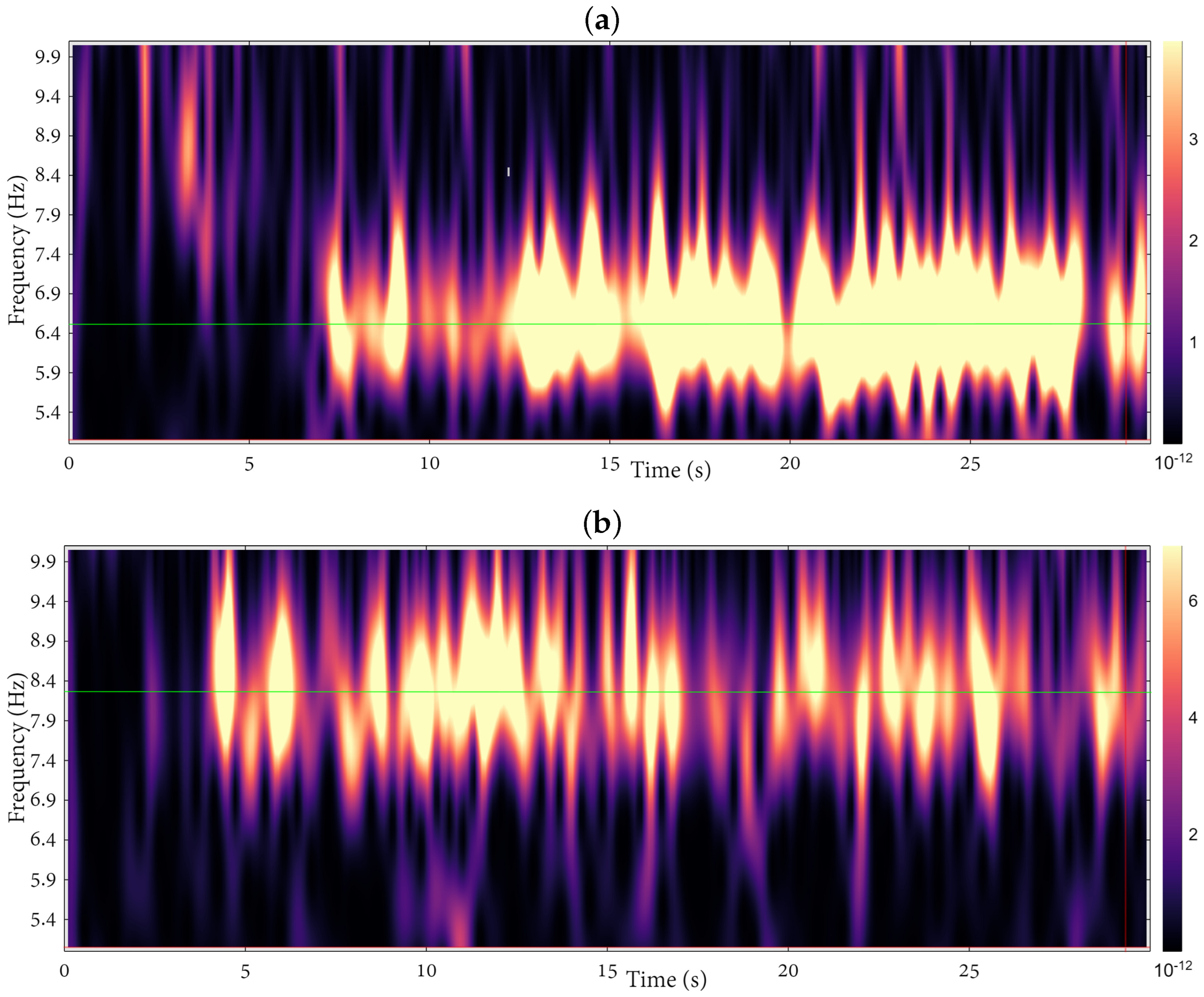 33]. The CWT provides a joint time–frequency representation of signal energy, enabling tracking of spectral power fluctuations associated with perceptual stabilization and switching [