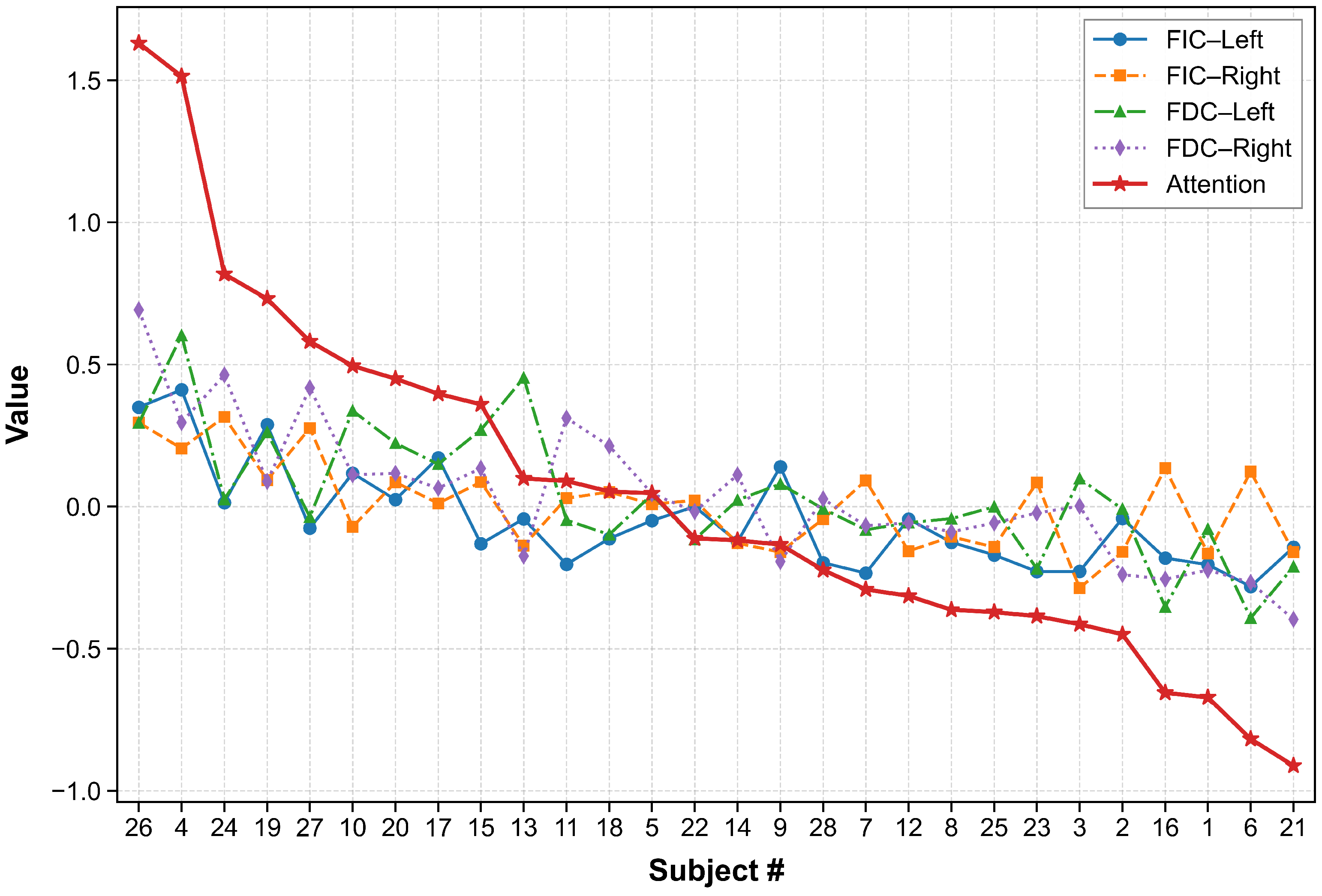 In sum, provides a continuous, behaviorally grounded metric of endogenous selective attention capacity that: (i) integrates complementary cognitive dimensions (integration and discrimination), (ii) reflects expected population-level variability, and (iii) identifies extreme performers whose neural and behavioral profiles warrant targeted investigation.