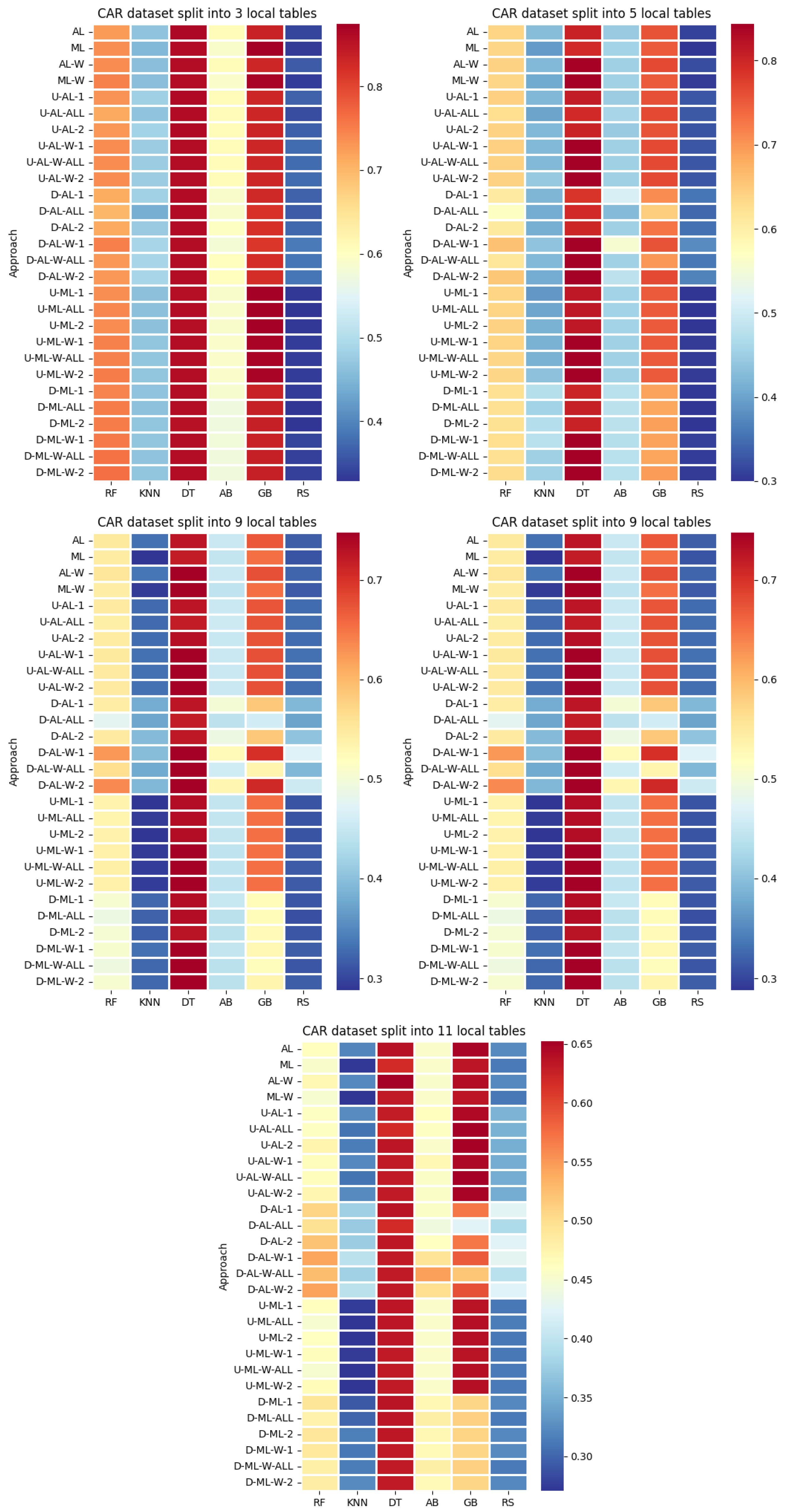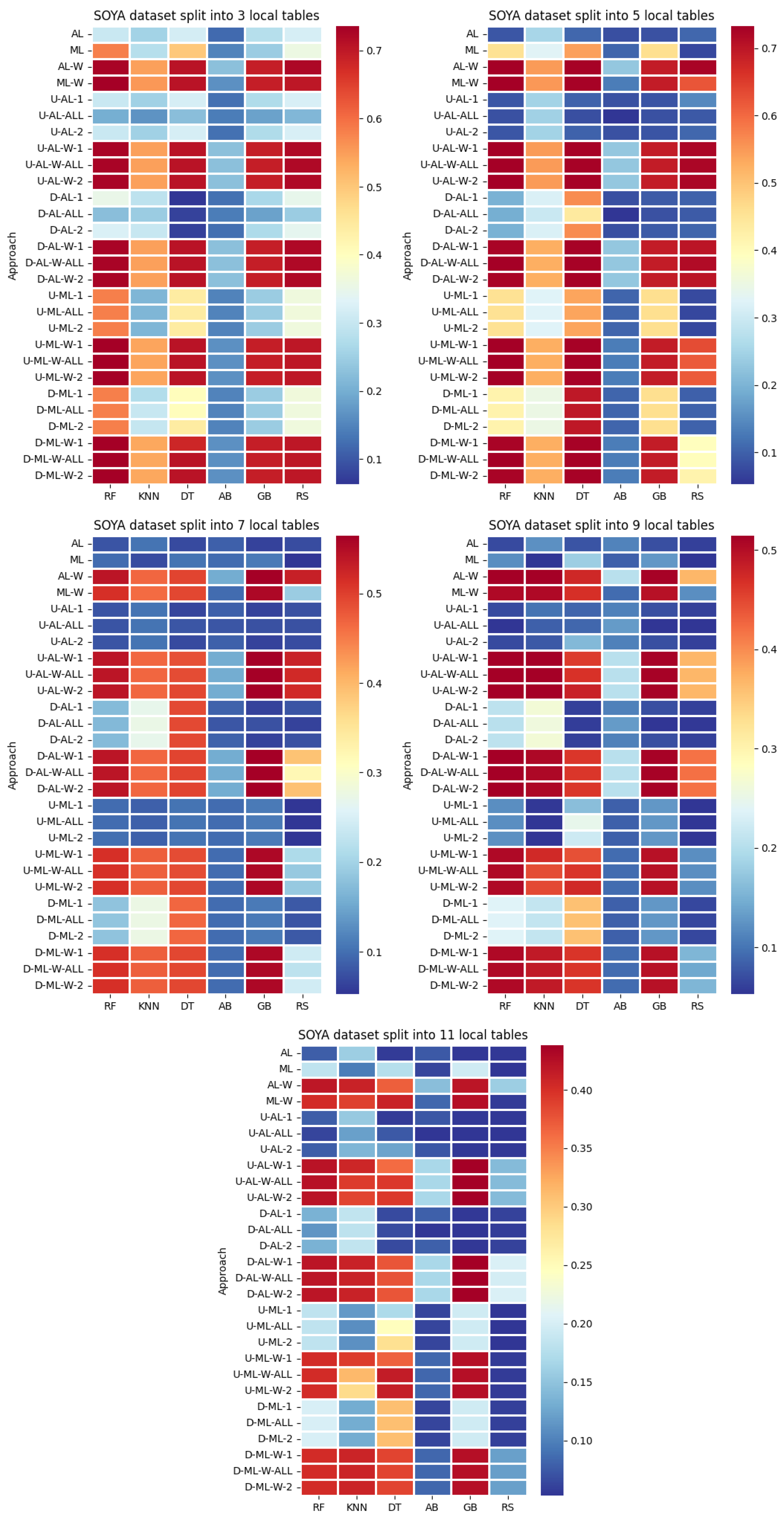 - U-AL-All—unified coalitions are created, local classifiers generate predictions from the abstract level, and, finally, the prediction vectors from all coalitions are summed.