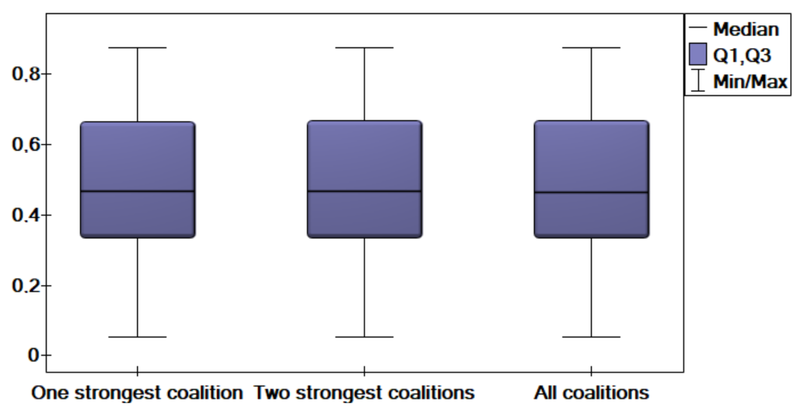| p-Value | One Strongest | Two Strongest | All Coalitions |