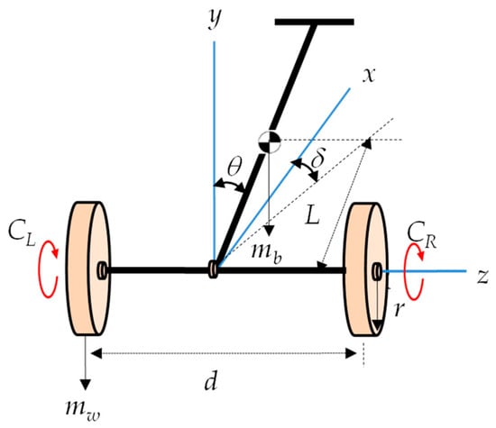 Recently, a variety of mathematical descriptions of TWMRs have been presented in the literature [2,3,4]. By applying the Newton–Euler or Lagrangian method, a nonlinear dynamic model of a TWMR can be derived in the following form: