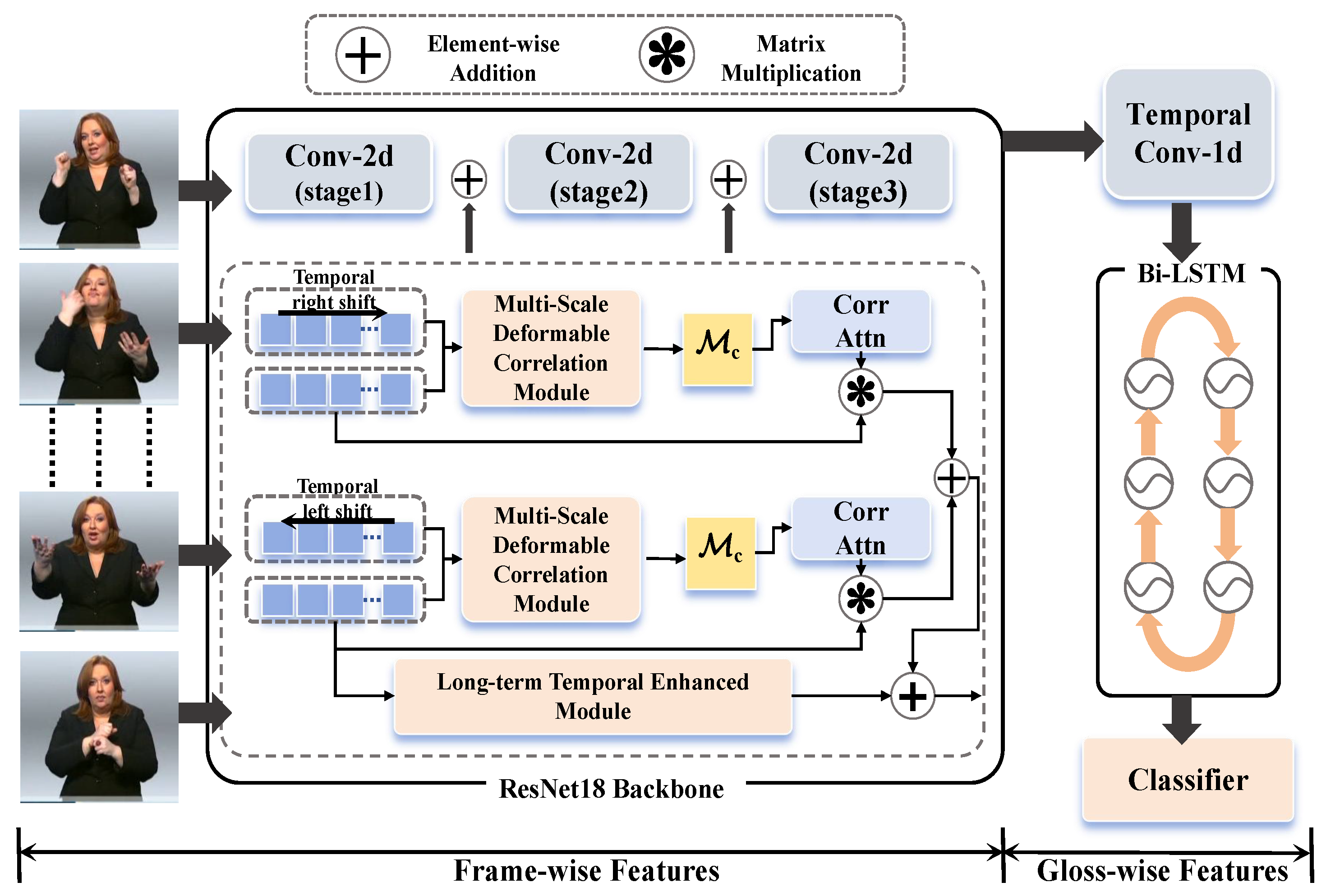Chicago/Turabian StyleJiang, Yihan, Degang Yang, and Chen Chen. 2026. "Enhancing Continuous Sign Language Recognition via Spatio-Temporal Multi-Scale Deformable Correlation" Applied Sciences 16, no. 1: 124. https://doi.org/10.3390/app16010124