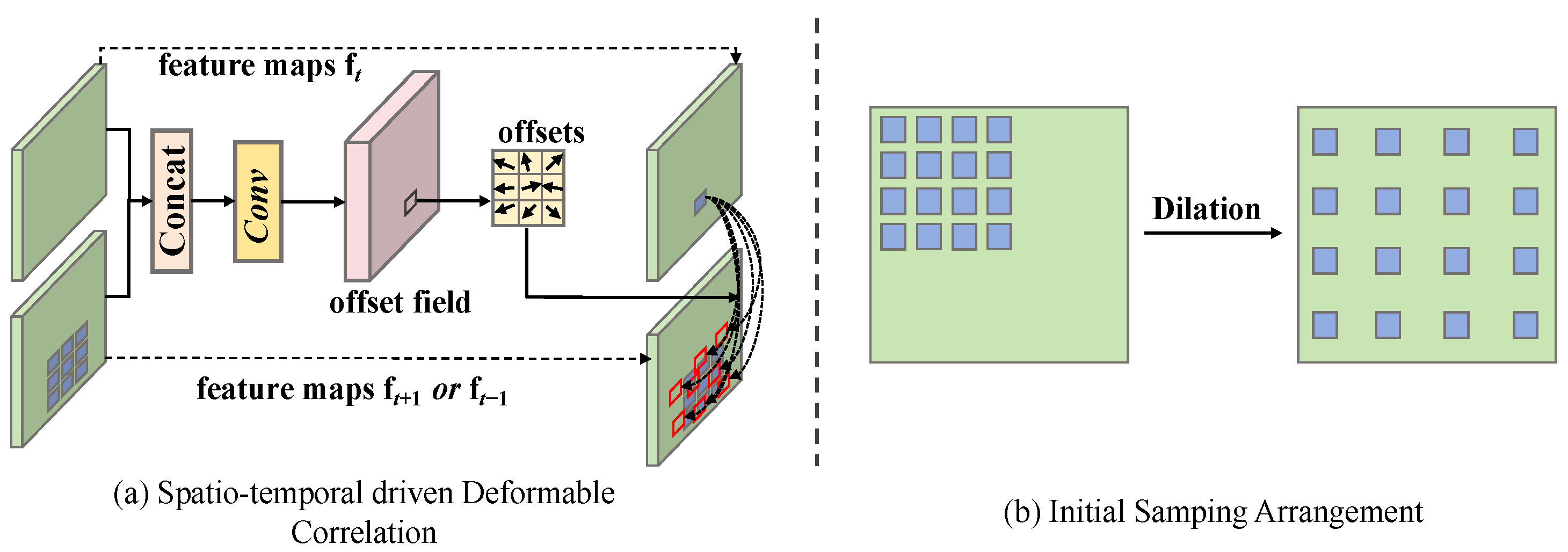 - Huang, Y.; Xiao, Z.; Firkat, E.; Zhang, J.; Wu, D.; Hamdulla, A. Spatio-temporal mix deformable feature extractor in visual tracking. Expert Syst. Appl. 2024, 237, 121377. [Google Scholar] [CrossRef]
