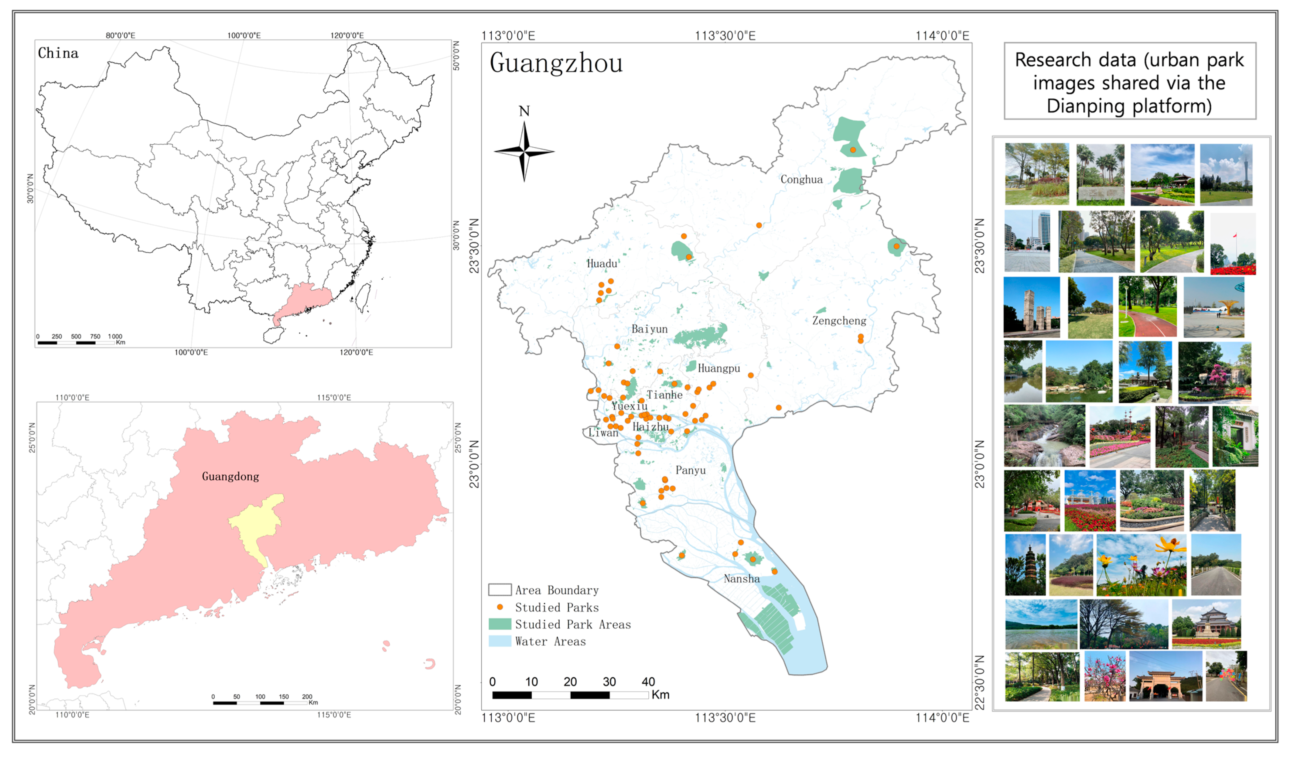 - Gao, F.; Liao, S.; Wang, Z.; Cai, G.; Feng, L.; Yang, Z.; Chen, W.; Chen, X.; Li, G. Revealing disparities in different types of park visits based on cellphone signaling data in Guangzhou, China. J. Environ. Manag. 2024, 351, 119969. [Google Scholar] [CrossRef]