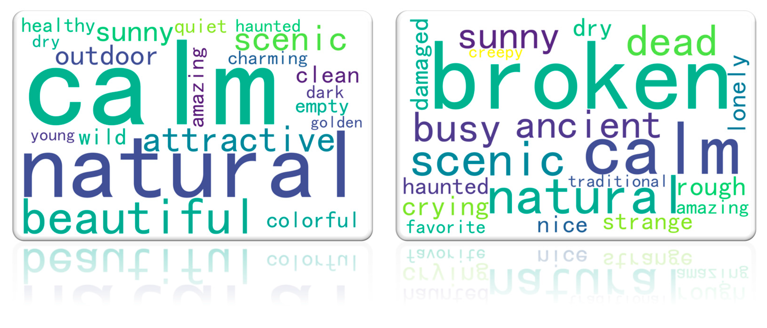 - Positive emotion images were mainly associated with nature, health, and openness, while negative emotion images were closely related to decay, abandonment, and oppression, as well as estrangement, disharmony, gloom, and bleakness.