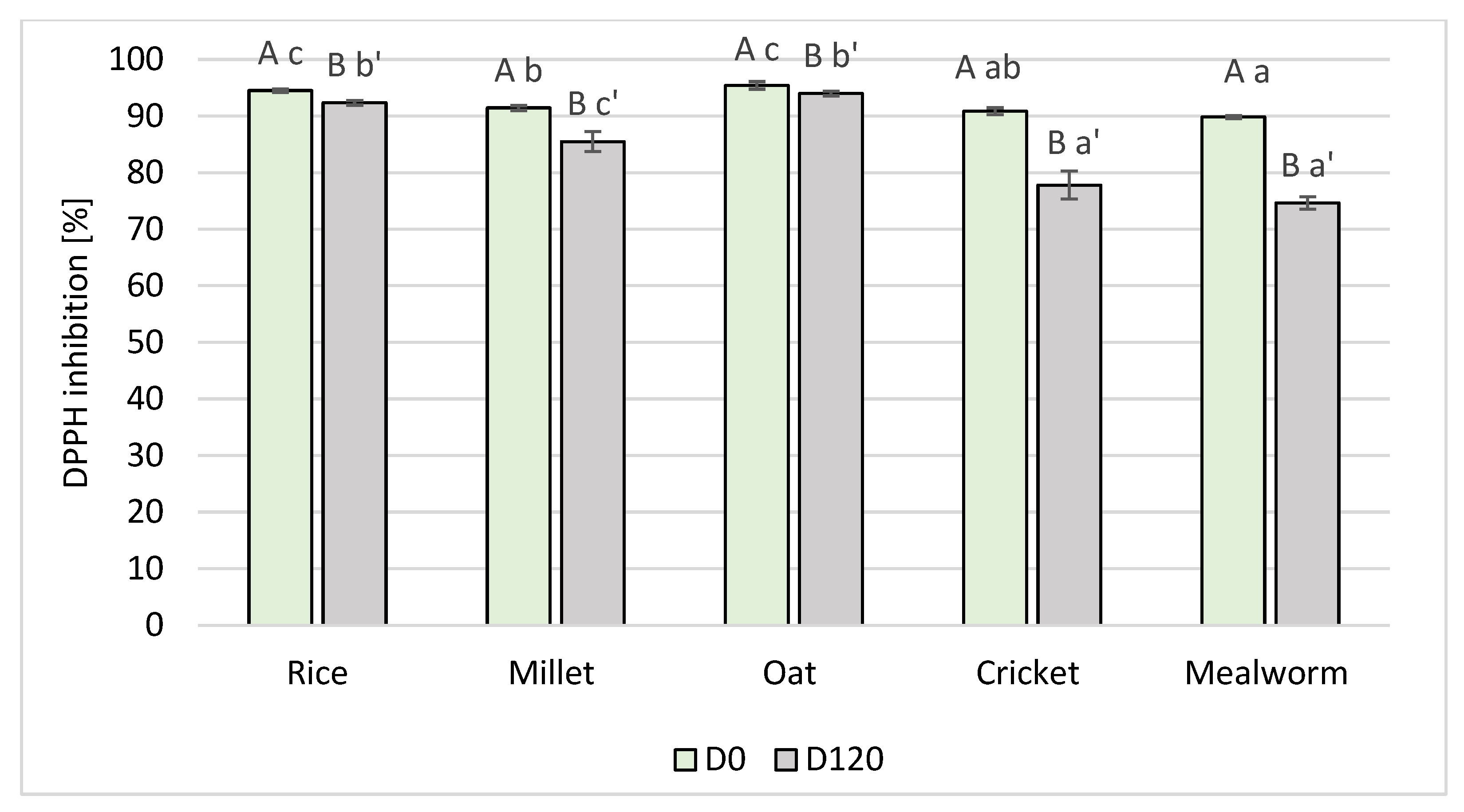 - Bernardo, Y.A.A.; Conte-Junior, C.A. Oxidative Stability in Edible Insects: Where Is the Knowledge Frontier? Trends Food Sci. Technol. 2024, 148, 104518. [Google Scholar] [CrossRef]