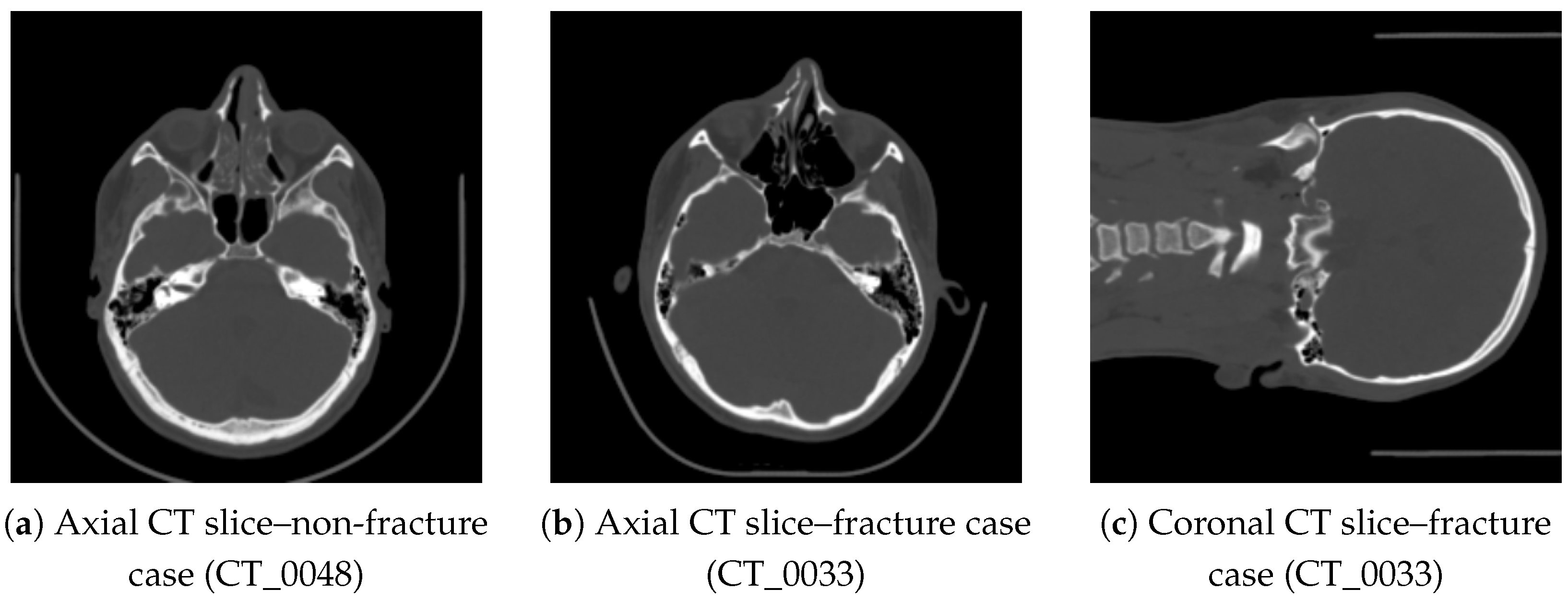 In this publication, we focus exclusively on the CNN-based processing pipeline. Radiomic analysis and hybrid models combining radiomic features with deep features will constitute the next stage of the project and will be presented in a separate study. This study provides the following contributions to the field of automated medical image analysis for pediatric craniofacial trauma: