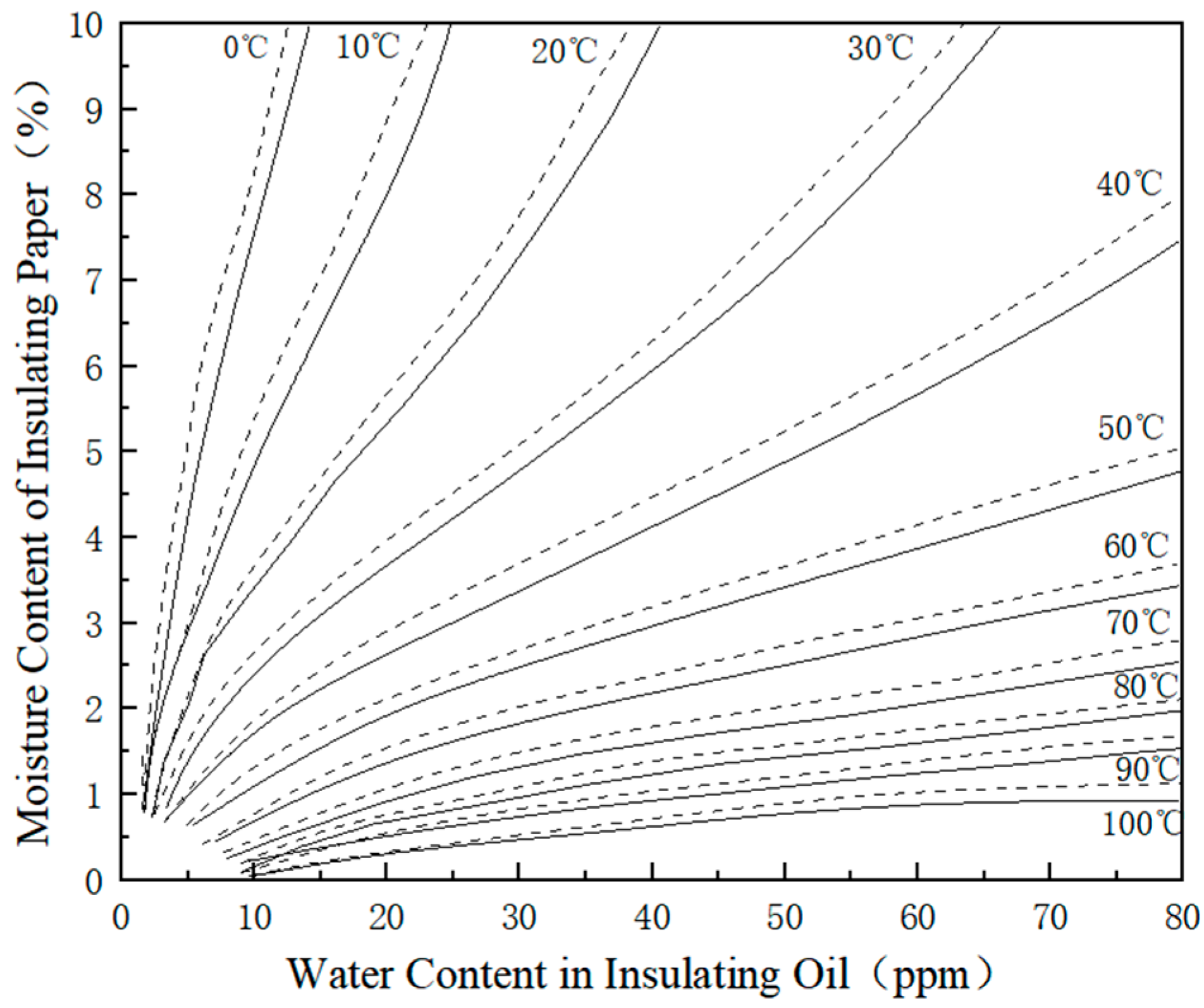 Based on the Oommen oil–paper moisture equilibrium curve shown in