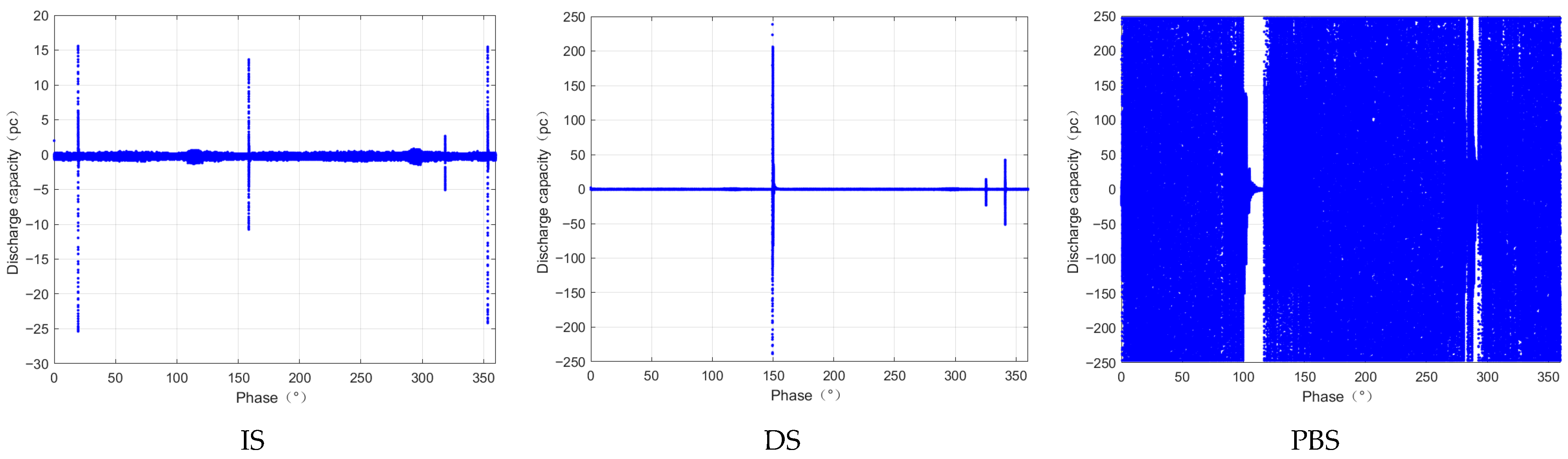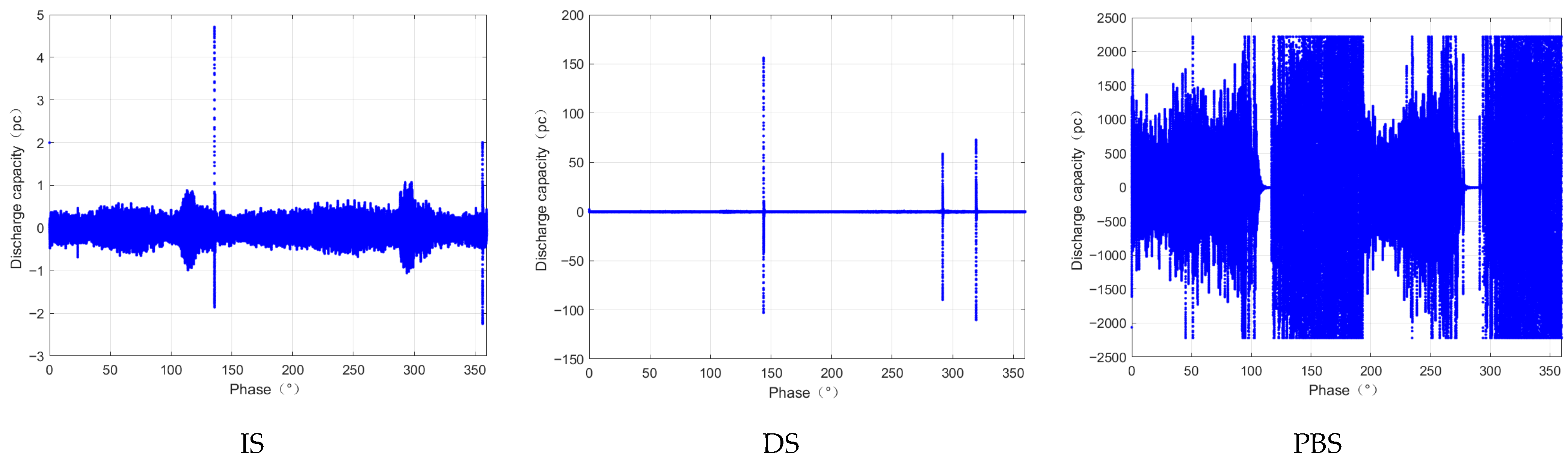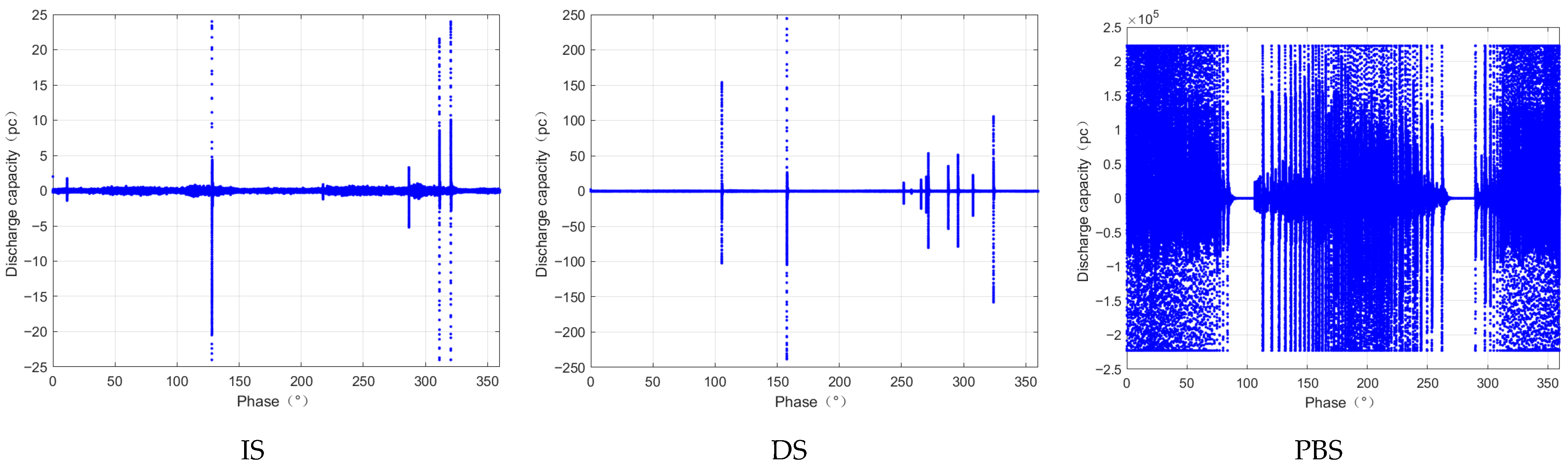 7]. These methods typically extract key PD parameters—such as Partial Discharge Phase-Resolved Pattern (PRPD), discharge frequency, average discharge magnitude, and phase distribution—to support comprehensive insulation assessment [