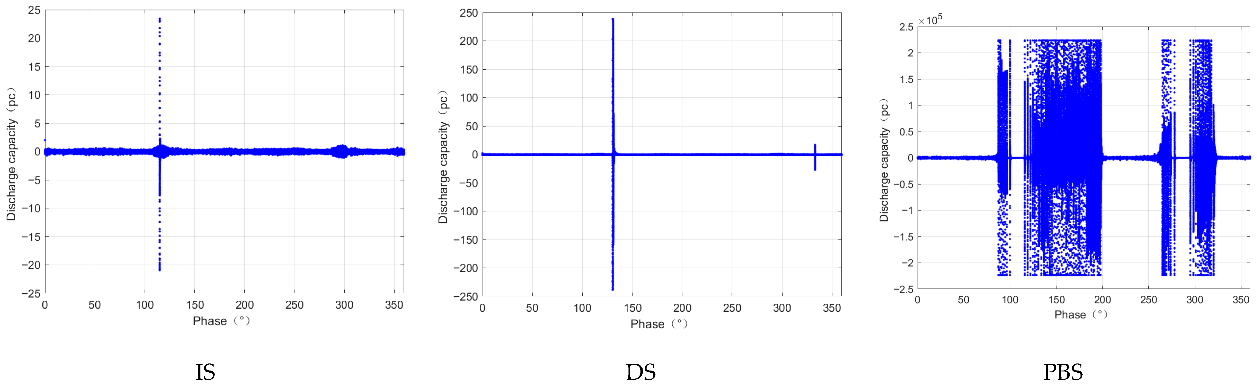 - Su, X. Study on the Characteristics and Phase Identification of Partial Discharge Processes in Oil-Paper Insulation; Dalian University of Technology: Dalian, China, 2024. [Google Scholar]