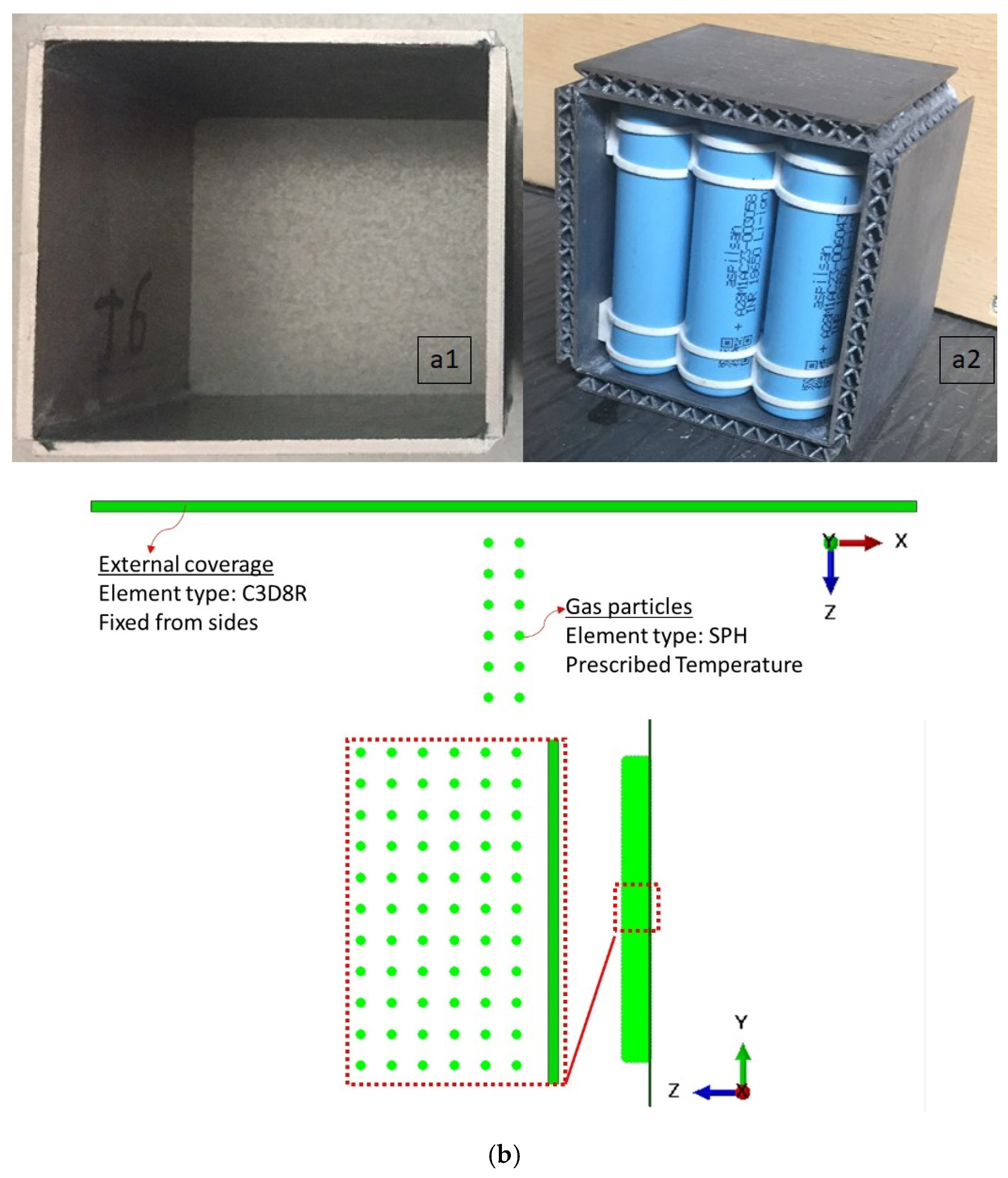 10] combined experimental and FE analyses to examine TR and gas venting in large LIB packs for underground mining, highlighting key design parameters for explosion-proof enclosures and providing insights for safer pack operation in hazardous environments. Collectively, these studies underscore the importance of experimental characterization for understanding TR initiation, venting, combustion, and mechanical failure mechanisms in LIBs.