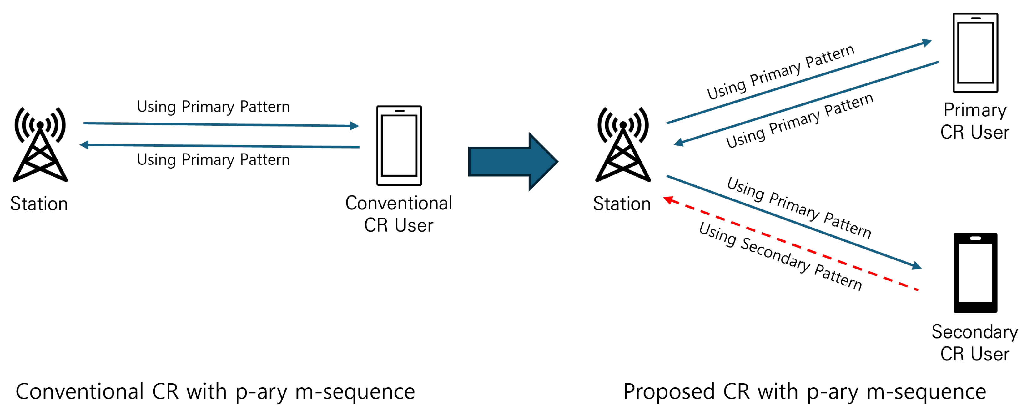 We discuss the scope and boundaries of direct comparison with existing methods, clarifying that the proposed scheme is designed for systems where the p-ary m-sequence is a prerequisite, and that differentiation is achieved without resorting to alternative, less optimal channel searching sequences. This preserves both the fairness and practical applicability of our solution in real-world CR environments.