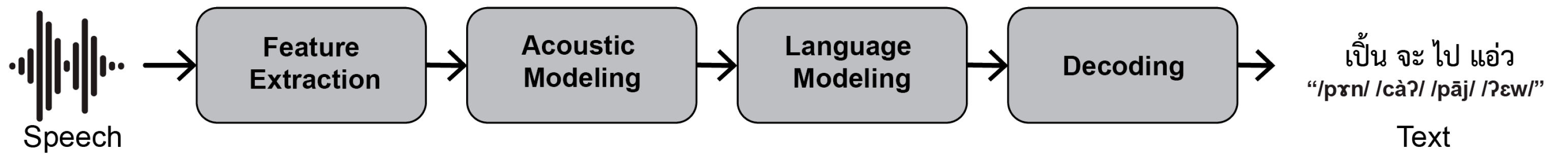 Generally, there are two major approaches to designing an ASR system: a classical approach and an end-to-end deep learning approach. In the classical ASR setting, vital aspects of speech recognition namely acoustics, phonetics and linguistics are to be modelled separately using expertise drawn from signal processing and natural language processing. An ASR system is then built from those basic components. Meanwhile, an end-to-end ASR compresses all the essential components into a neural network that tries to capture the relationship between the input speech signal and its transcription.
