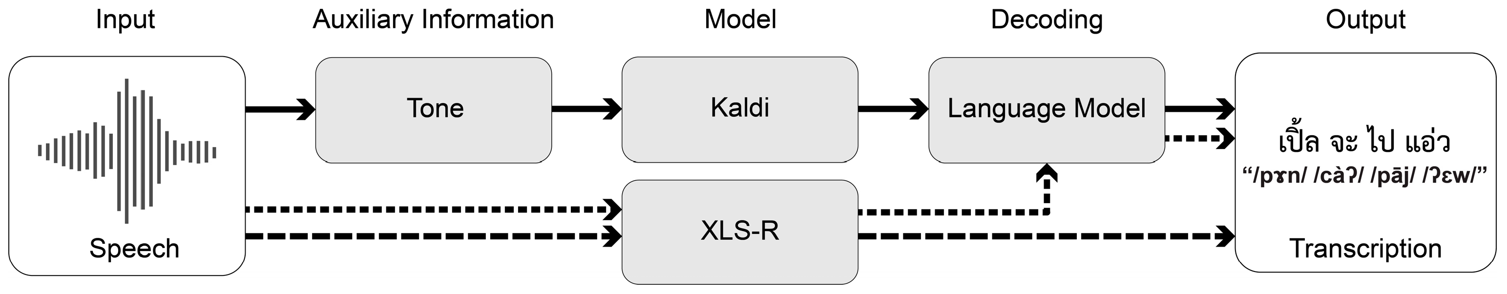 From the research questions and challenges, we set out to investigate two major approaches to build an ASR system for the Northern Thai language dialect. The effects of corpus quality and the use of auxiliary information, in the form of tonal information, model pre-training and language models, on the performance of both approaches shall also be studied. We consider the following to be our main contributions.