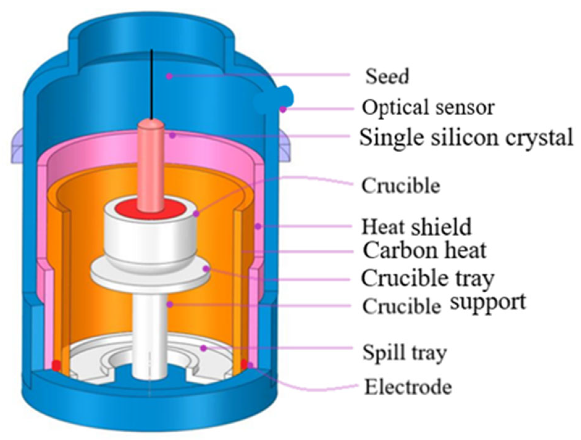 3. The resulting powders were melted in a platinum crucible in a single-crystal furnace (see the schematic setup in