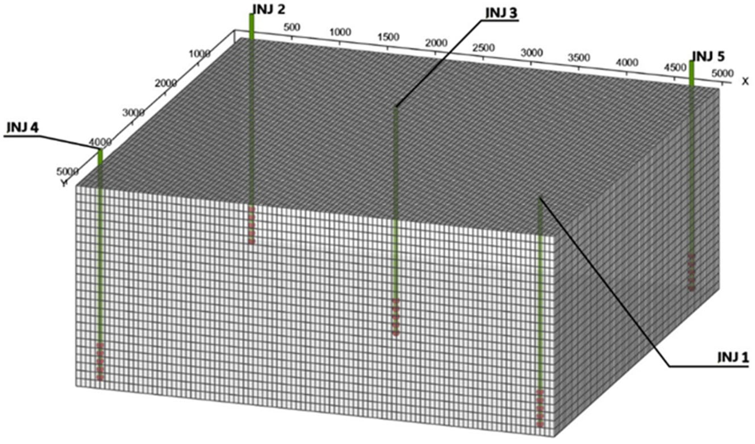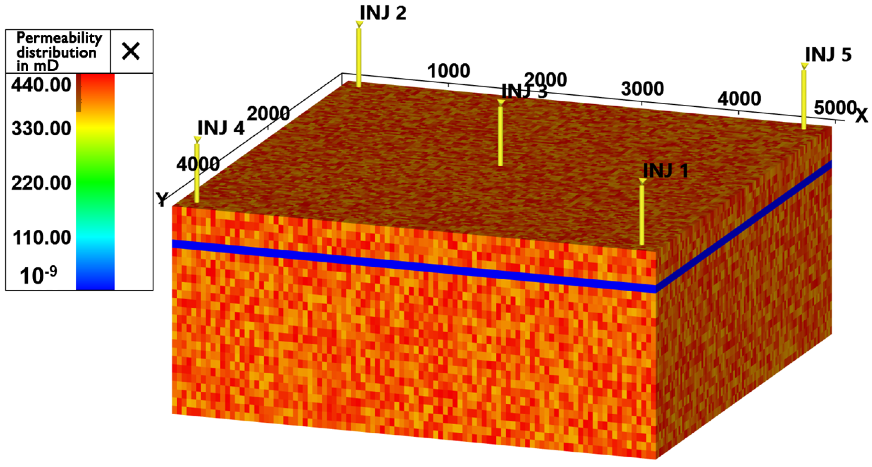 45] allows for the creation of detailed and comprehensive 3D models of the deep saline aquifer. The software provides tools and functionalities to incorporate various geological and reservoir data, such as porosity, permeability, and fluid properties, into the models. These models were specifically built to simulate and analyze the behavior of deep saline aquifers, focusing on their potential for CO