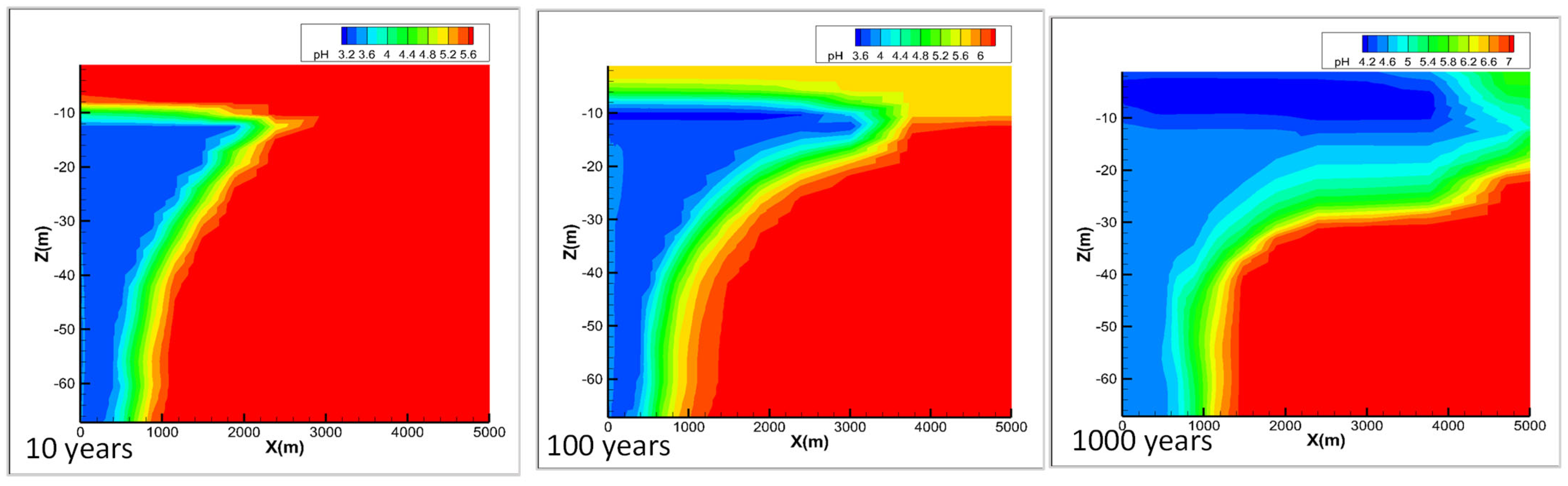 Figure 11). After 10 years of continuous injection, the monitoring phase begins, during which a change in pH gradually spreads as CO
