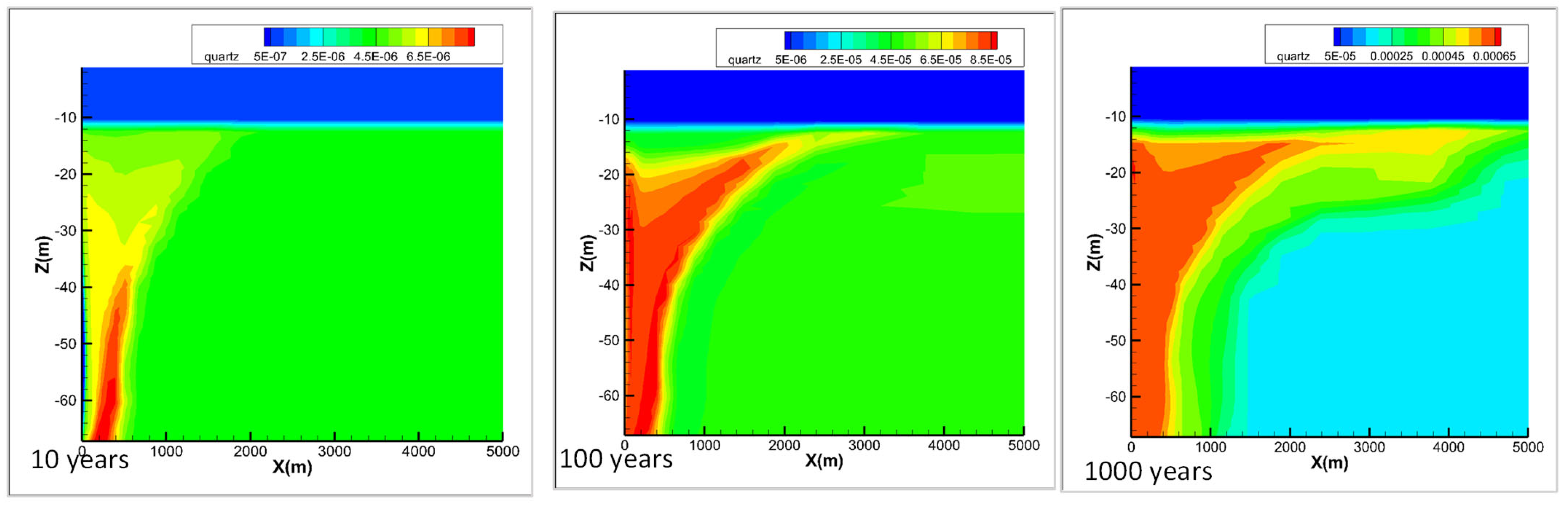 2, and quartz concentration was observed over a span of 1000 years, as depicted in